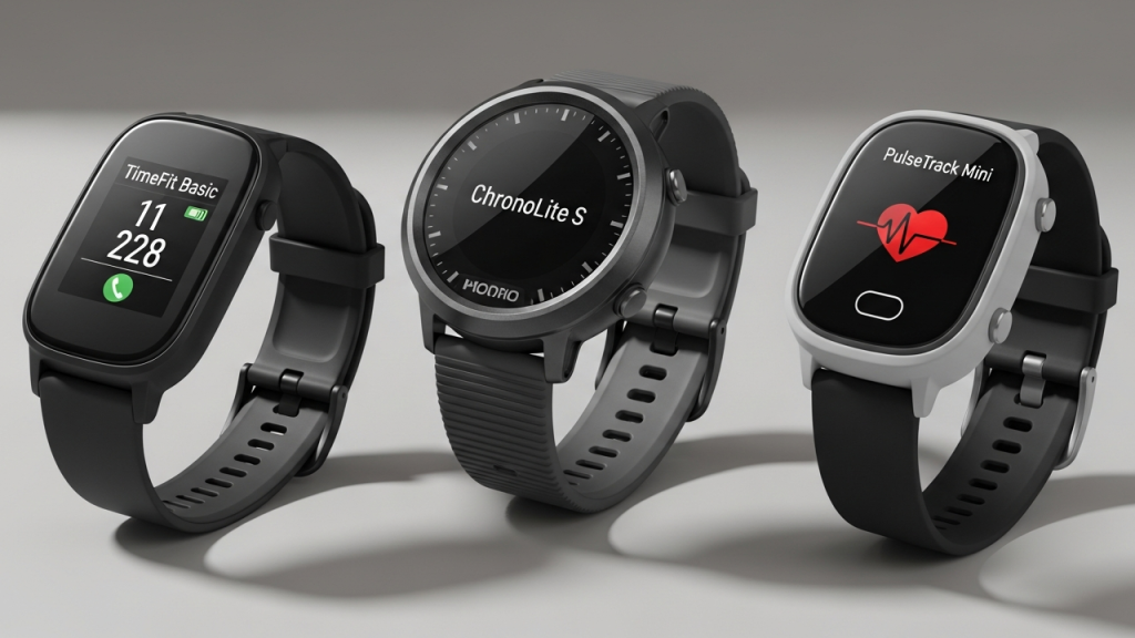 Nessa faixa de preço, três opções costumam aparecer com frequência em pesquisas online: o TimeFit Basic, o ChronoLite S e o PulseTrack Mini. Cada um atende perfis diferentes, desde quem quer apenas ver as horas até quem deseja funções próximas às de uma pulseira inteligente.