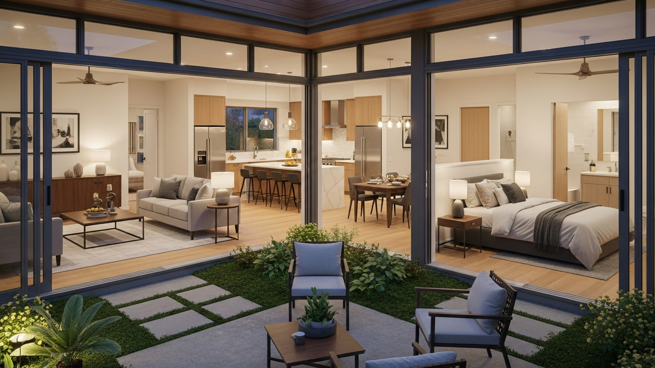 Projetos com espaços integrados e pátio são ideais para famílias com filhos ou casais jovens que valorizam convivência diária ao ar livre.