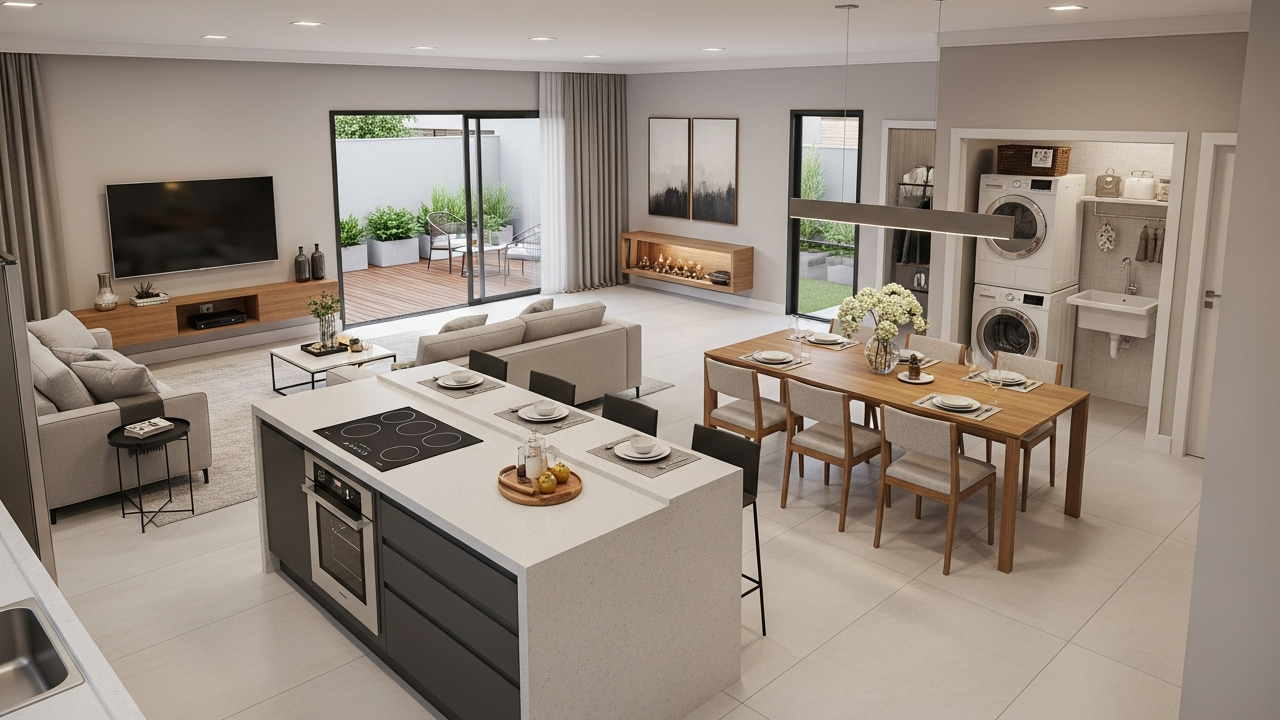 Outro benefício é a redução de custos operacionais relacionados a circulação por escadas e áreas técnicas. Entretanto, a planta pode exigir planejamento rigoroso de armazenamento e privacidade acústica entre cômodos, impactando conforto quando muitos ocupantes dividem os espaços simultaneamente adequadamente.