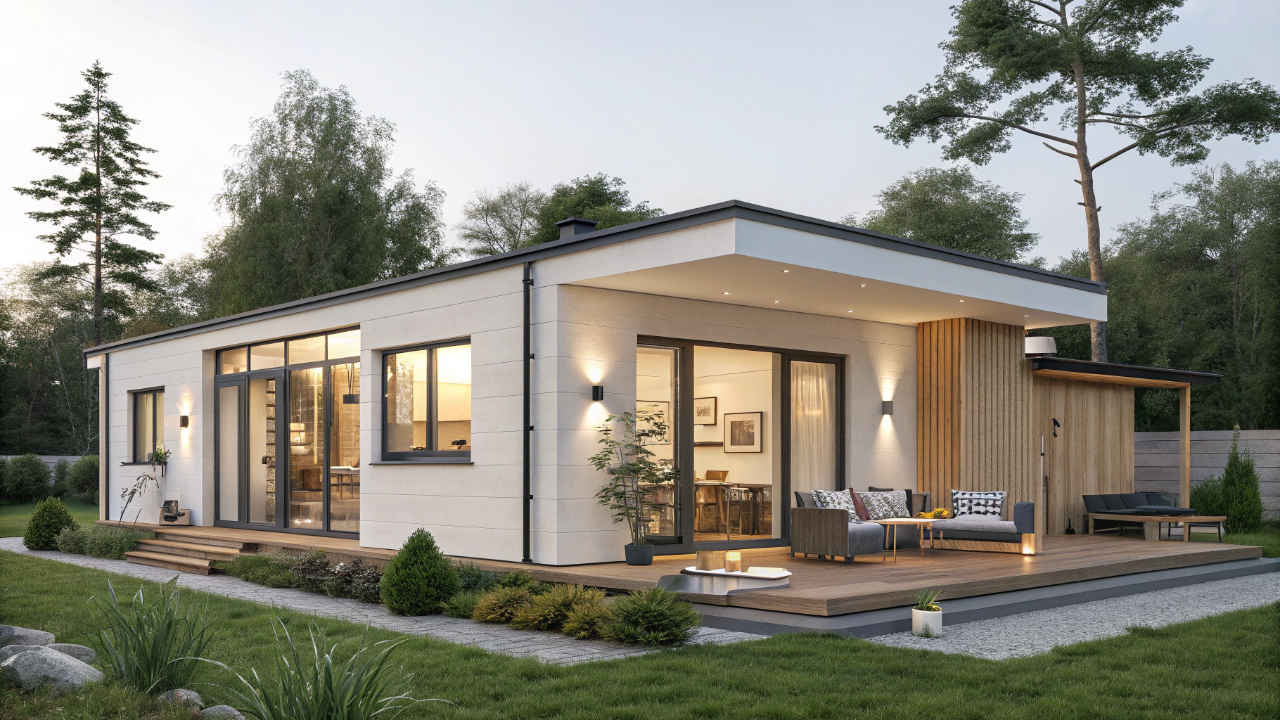 O estilo moderno se destaca com linhas retas, fachada de vidro e uso de materiais naturais. Essa estética remete a residências europeias compactas, combinando funcionalidade e elegância. O telhado oculto e o aproveitamento da iluminação natural reforçam a sensação de amplitude.