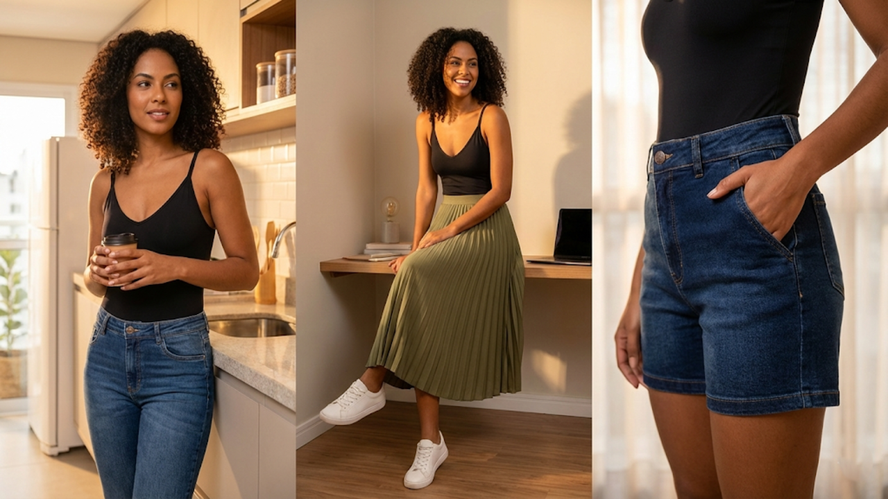 As roupas versáteis que criam vários looks resolvem o drama diário de abrir o armário cheio e não ter absolutamente nada para vestir. Essa estratégia simples de misturar peças coringas multiplica as suas opções e poupa uma boa grana no final do mês.