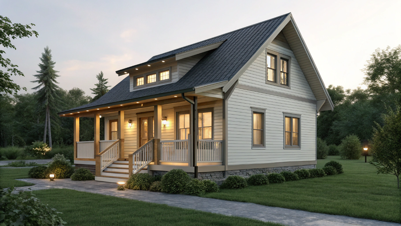 A casa combina elementos rústicos com soluções contemporâneas, utilizando materiais naturais, esquadrias amplas e acabamentos que reforçam a identidade acolhedora. Esse estilo favorece equilíbrio entre estética, funcionalidade e durabilidade, respeitando práticas construtivas amplamente reconhecidas na arquitetura residencial urbana.