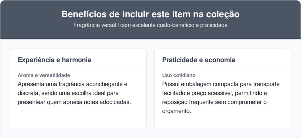 Embora seja uma colônia mais leve, sua aderência surpreende quem busca economia sem abrir mão da qualidade. De acordo com dados da ABIHPEC, o setor de perfumaria nacional cresce justamente por oferecer essa combinação de bem-estar e acessibilidade financeira para a classe média.