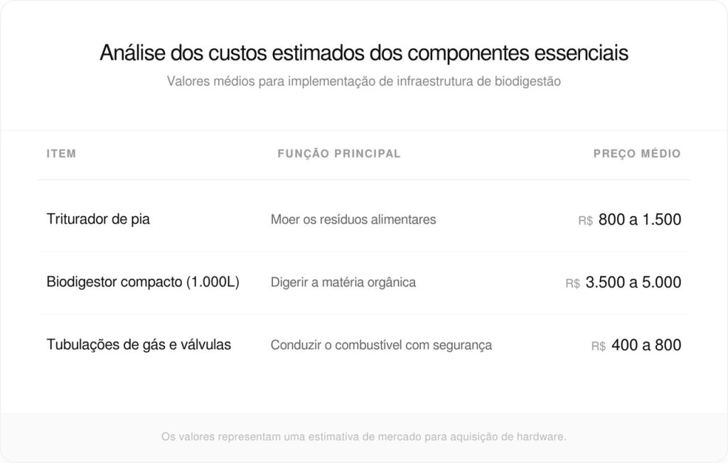 Analise os custos estimados dos componentes essenciais: