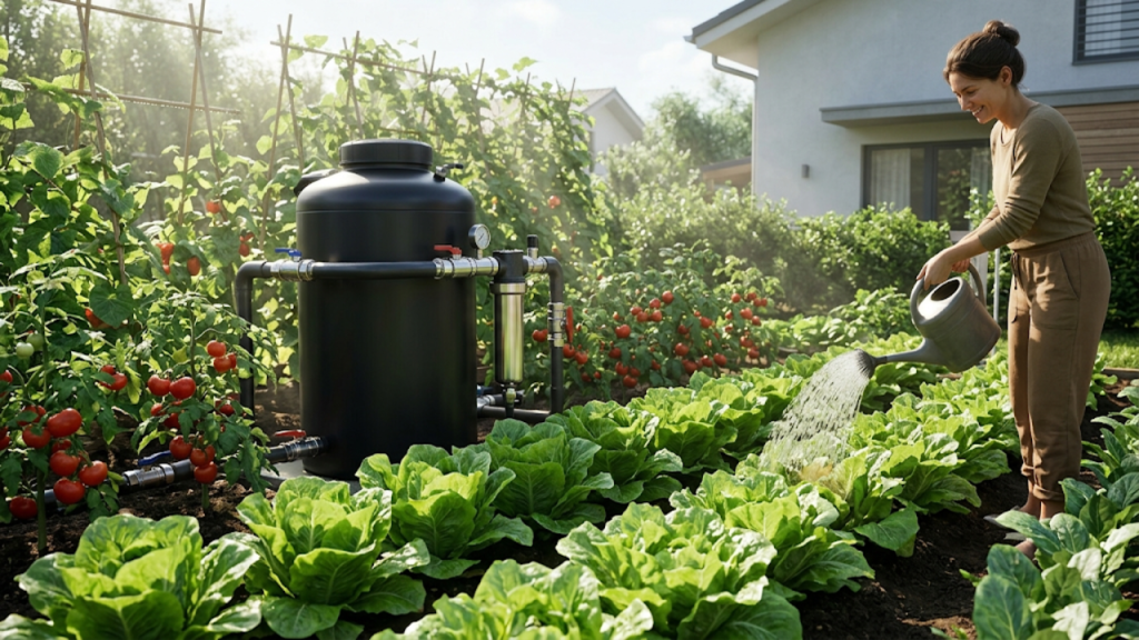 - Geração diária de biofertilizante líquido e rico para regar hortas e jardins.