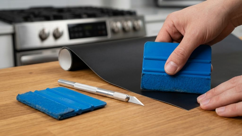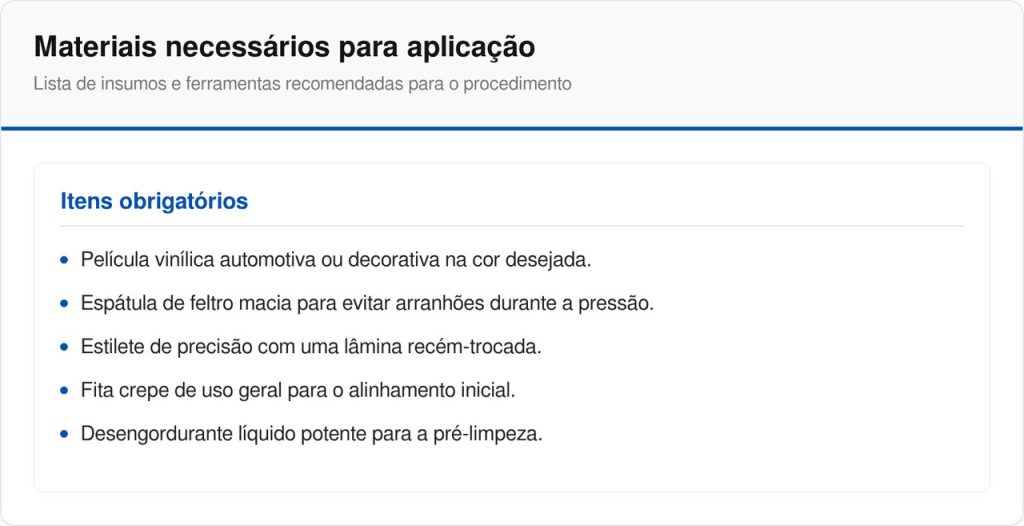 O sucesso visual da sua renovação estética depende diretamente dos acessórios que você utiliza durante o processo. O improviso com réguas de escola rígidas ou facas de cozinha afiadas fatalmente rasgará o filme plástico e jogará todo o seu material no lixo.