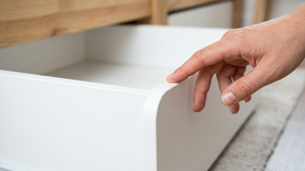 Outra opção muito barata nas madeireiras é o MDF com revestimento melamínico branco. Esse acabamento liso e sintético facilita a limpeza rotineira e impede que farpas de madeira rasguem seus lençóis delicados durante o manuseio.
