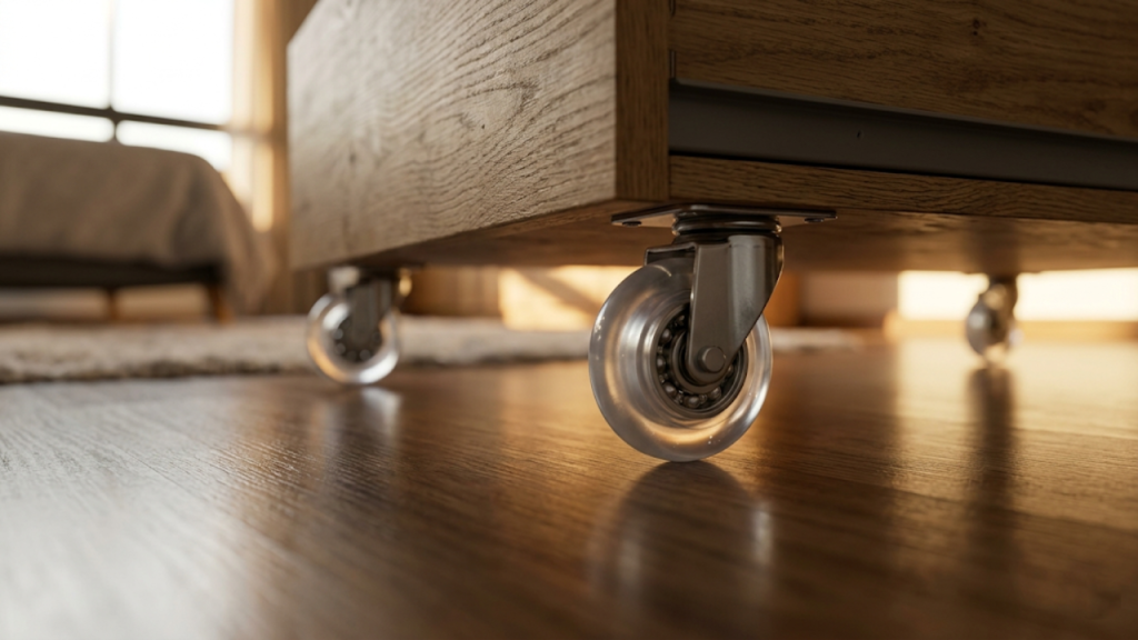 Antes de fechar o projeto, meça cautelosamente a altura exata entre o piso e a base da cama. Subtraia três centímetros dessa conta para garantir que a estrutura role livremente sem raspar no tecido do móvel.
