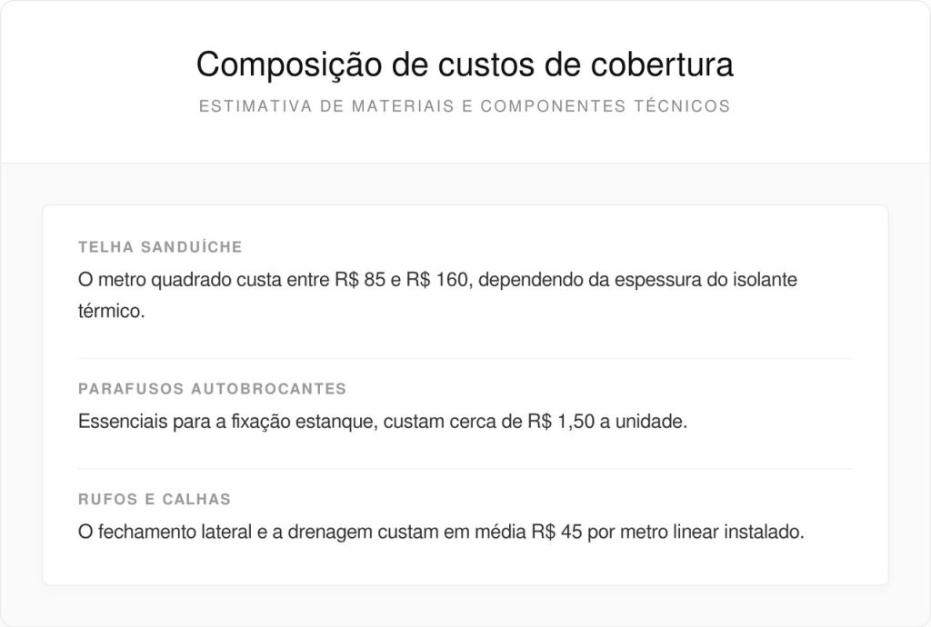 A valorização do imóvel no mercado imobiliário também compensa o gasto total realizado na reforma. Uma cobertura nova, segura e esteticamente moderna atrai compradores e elimina a preocupação com reparos estruturais por décadas. Analise as cotações locais de materiais e garanta a proteção definitiva do seu lar contra as intempéries.