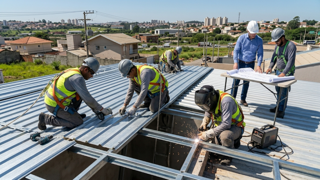 Contratar profissionais que dominam a solda ou a montagem parafusada de perfis metálicos é indispensável para evitar vazamentos futuros. A mão de obra para instalação de telhados metálicos costuma ser cobrada por metro quadrado, variando entre R$ 70 e R$ 120 em grandes centros urbanos.