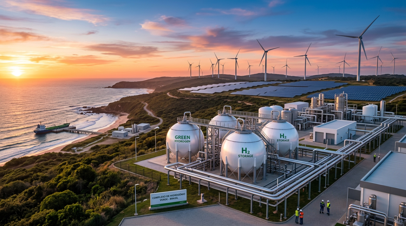 O hidrogênio verde é produzido por meio da eletrólise da água, utilizando eletricidade proveniente de fontes renováveis. Nesse processo, a água é separada em hidrogênio e oxigênio sem emissão direta de carbono.