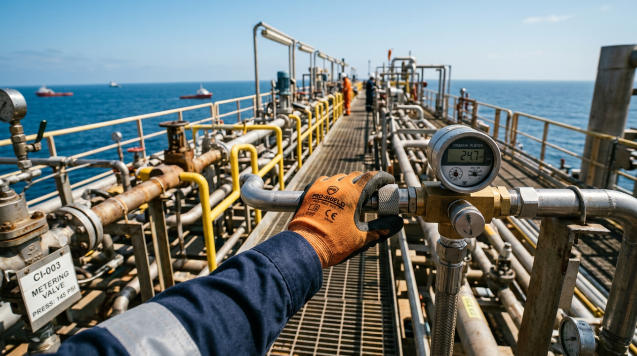 A formação de incrustações minerais é um dos principais desafios na produção de petróleo. O uso de inibidores de incrustação evita bloqueios em válvulas e tubulações. Essa prática é essencial para manter a eficiência e segurança das operações em ambientes de alta pressão.