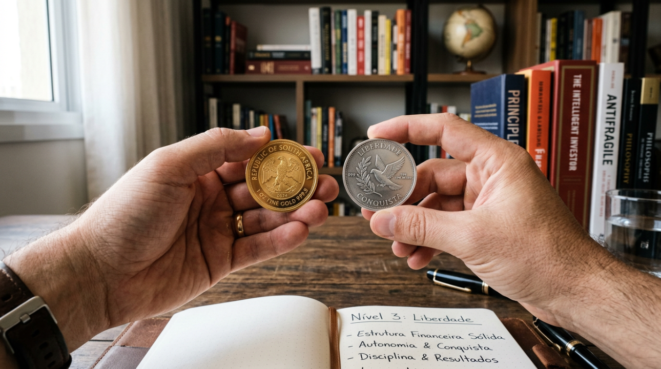 O segundo nível envolve a construção de ativos que geram renda passiva, como dividendos, aluguéis ou rendimentos financeiros. Esse estágio reduz a dependência do trabalho ativo e cria estabilidade mesmo diante de crises prolongadas.