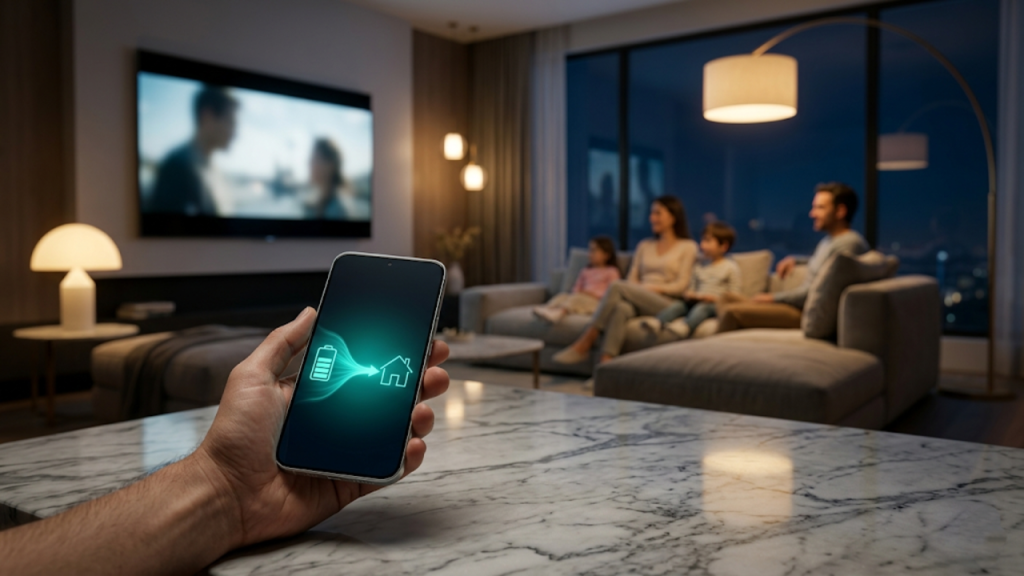 Durante a noite, o gerenciador desconecta a casa da rede e utiliza exclusivamente a energia armazenada. O monitoramento em tempo real via aplicativo permite que o usuário acompanhe o nível de carga e ajuste o consumo se necessário. Isso promove uma consciência energética superior na família.