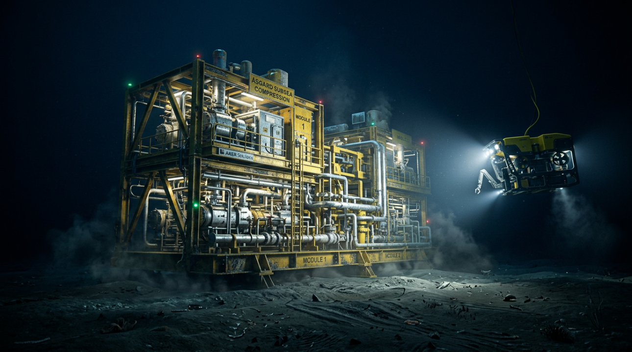 A tecnologia de processamento submarino no campo de Åsgard, operado pela Equinor no Mar da Noruega, representa um marco histórico para a extração de hidrocarbonetos em águas profundas.