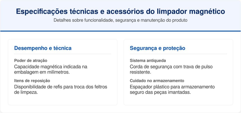 Guardar o rodo com a proteção entre as partes magnéticas impede que os ímãs se choquem com força excessiva. Esse impacto pode trincar a carcaça de plástico ou quebrar o componente magnético interno. A limpeza das bordas após o uso remove resíduos de sabão acumulados.