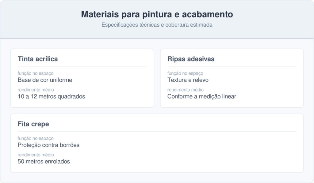 Compreender o rendimento real de cada produto adquirido afasta o fantasma do desperdício de material novo. Abaixo detalhamos a função específica dentro do planejamento caseiro e o desempenho esperado de cada recurso: