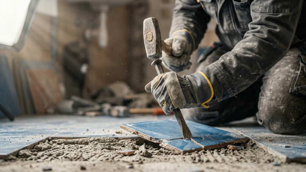 O serviço de demolição exige extremo cuidado para remover a cerâmica antiga e a argamassa sem perfurar as tubulações embutidas no chão. Profissionais especializados cobram entre R$ 80 e R$ 130 por metro quadrado para executar essa etapa perigosa.