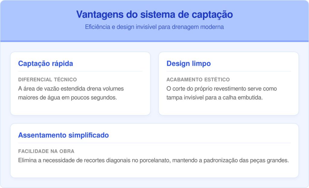 A resina se molda perfeitamente aos contornos dos ralos e sobe pelas paredes na altura do rodapé, criando um recipiente totalmente estanque. O custo desse polímero avançado varia de R$ 180 a R$ 280 por metro quadrado aplicado.