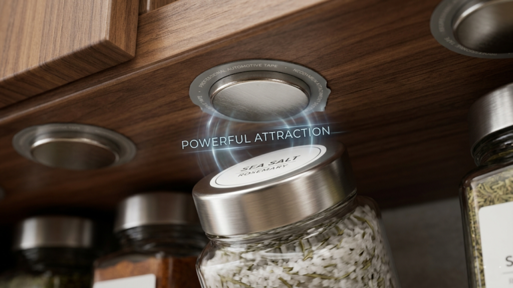 O peso do sal grosso ou do orégano exige um poder de sustentação superior ao dos enfeites flexíveis de geladeira. A solução segura de fixação reside no uso do neodímio, uma liga metálica rara capaz de gerar um campo magnético absurdamente forte.