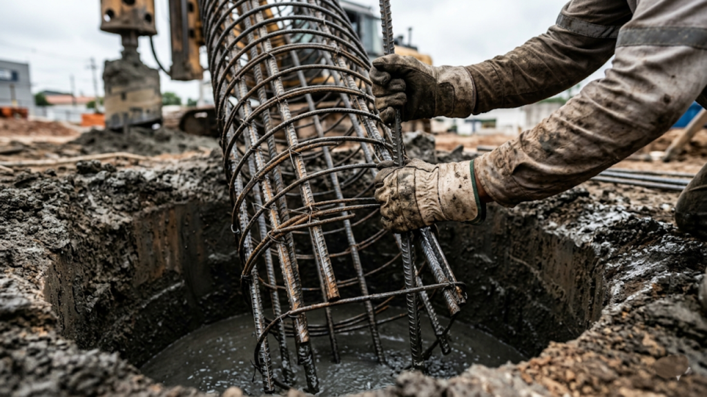 A fundação profunda garante a estabilidade física do maciço de terra e evita movimentações perigosas da superfície. A aplicação técnica de estacas de concreto armado consome grande parte do orçamento primário, exigindo sondagens prévias de terreno que custam cerca de R$ 3.000 por ensaio.