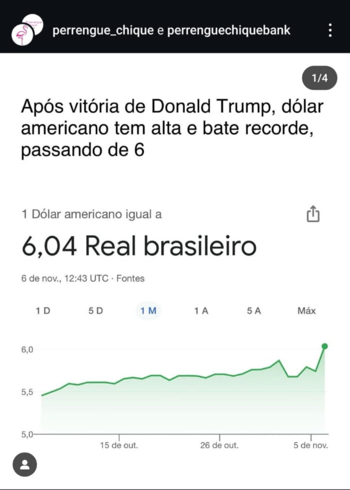 A cotação do dólar no Brasil após a eleição de Donald Trump como novo presidente dos Estados Unidos vem gerando confusão entre os brasileiros na manhã desta quarta-feira (6). Ao pesquisar pela moeda no Google, o valor que aparece às 12h37 é de R$ 6,18, com uma expressiva alta diária de 7,65%, mas a cotação está errada.