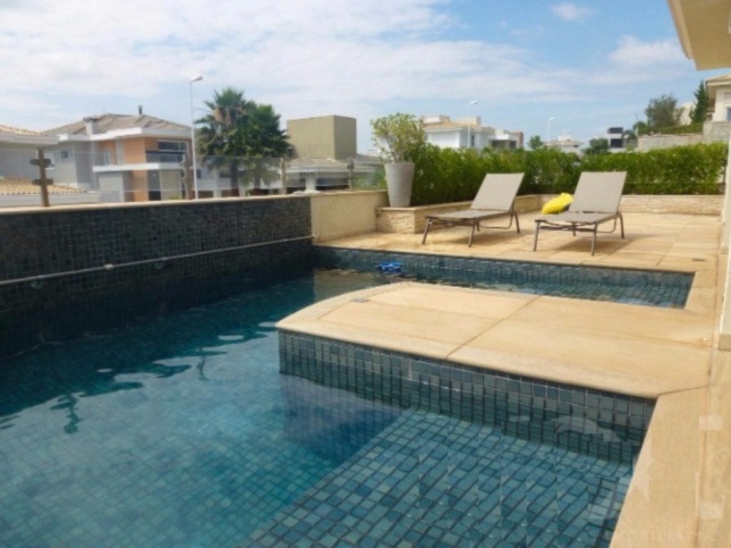 O ambiente externo diversificado desta casa de luxo agrada os mais tranquilos e mais festeiros. A união entre churrasqueira e piscina possibilita muita diversão para momento de comemoração.