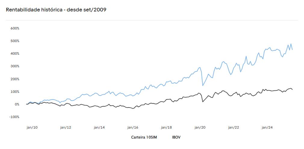 Desde a gestão iniciada por Carlos E. Sequeira em 2009, a carteira registra um ganho acumulado de 431,1%, superando a valorização do Ibovespa (116,3%) e do IBrX-50 (157,3%).