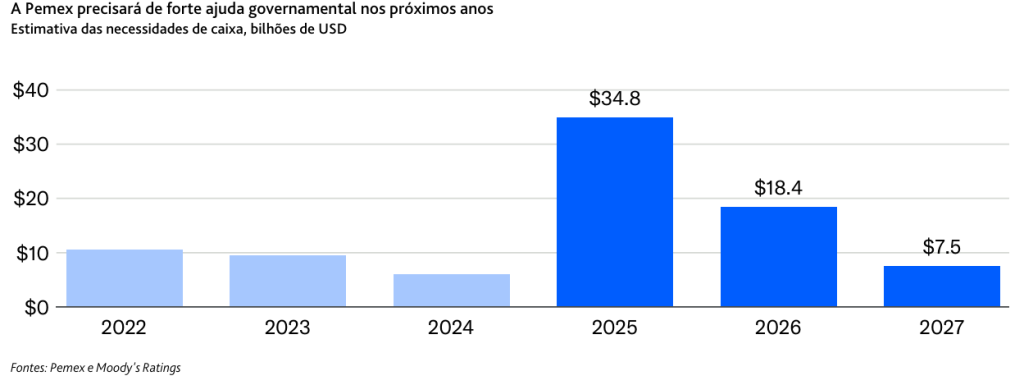 No México, a Petróleos Mexicanos (Pemex) permanece no centro do setor, sustentada por forte apoio governamental.