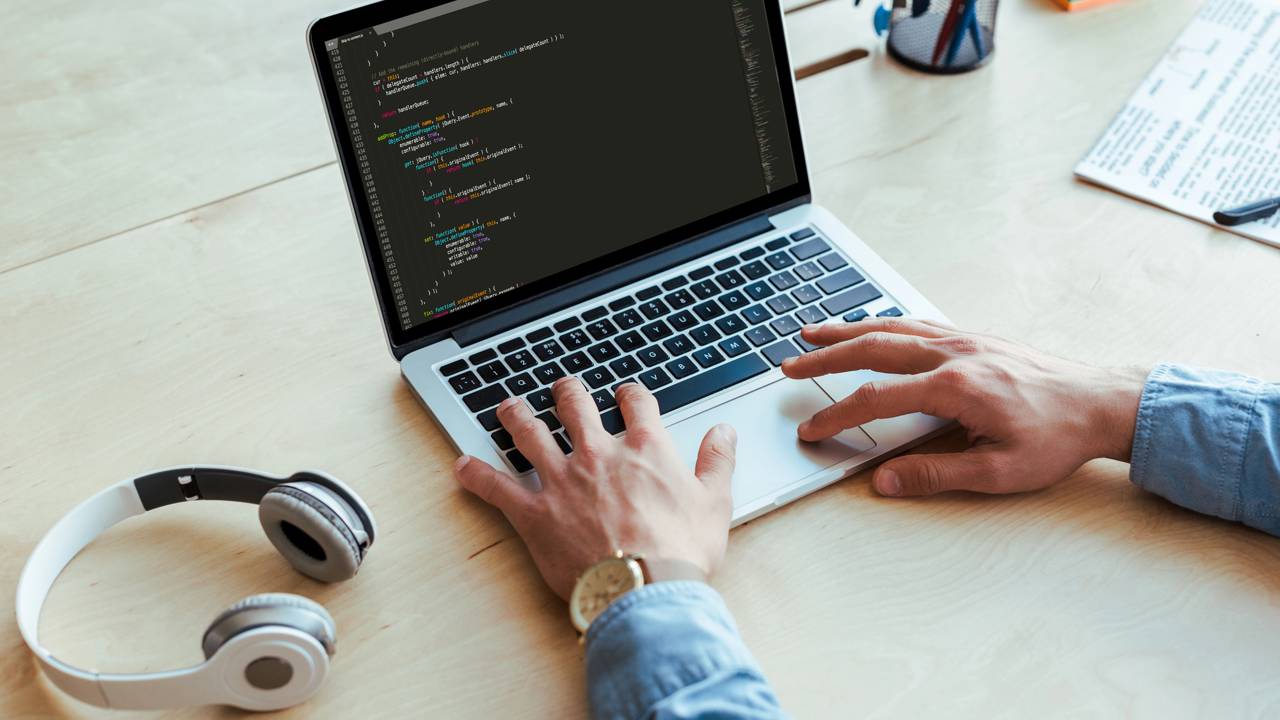 Pessoa digitando em um notebook com código na tela Créditos: depositphotos.com / VitalikRadko