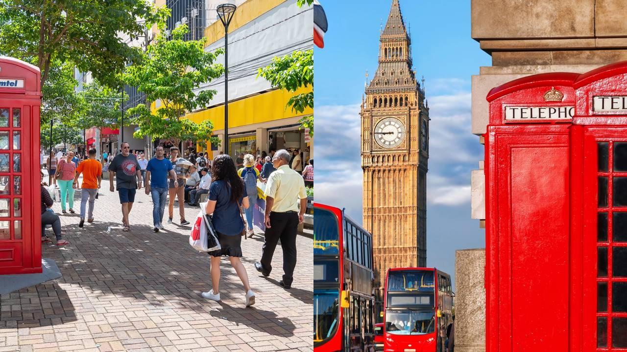 Embora a arquitetura dominante não seja inglesa, a cidade celebra essa herança em seus símbolos. Os visitantes podem encontrar as icônicas cabines telefônicas vermelhas em pontos turísticos, como na Praça Marechal Floriano Peixoto, sendo paradas clássicas para fotos.