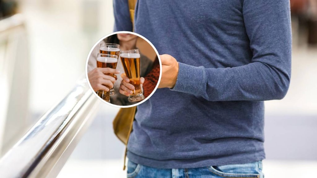 Homem com mochila segurando celular no aeroporto aguardando o voo e Vista recortada de amigos felizes brindando com cerveja – Créditos: depositphotos.com / d.travnikov – Créditos: depositphotos.com / AllaSerebrina