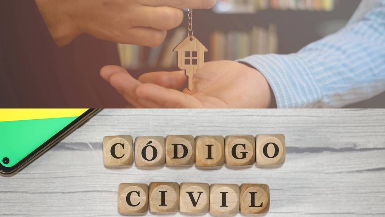 Empresa imobiliária com bom trabalho em equipe, conceito de negócio imobiliário e O texto CÓDIGO CIVIL em português brasileiro escrito em cubos de madeira. Um celular com a bandeira brasileira sendo exibido na tela na composição - Créditos: depositphotos.com / rmcarvalhobsb - Créditos: depositphotos.com / obeyleesin