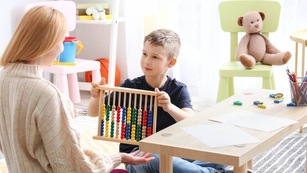 Psicóloga trabalhando com menino com transtorno do espectro autista – Créditos: depositphotos.com / serezniy