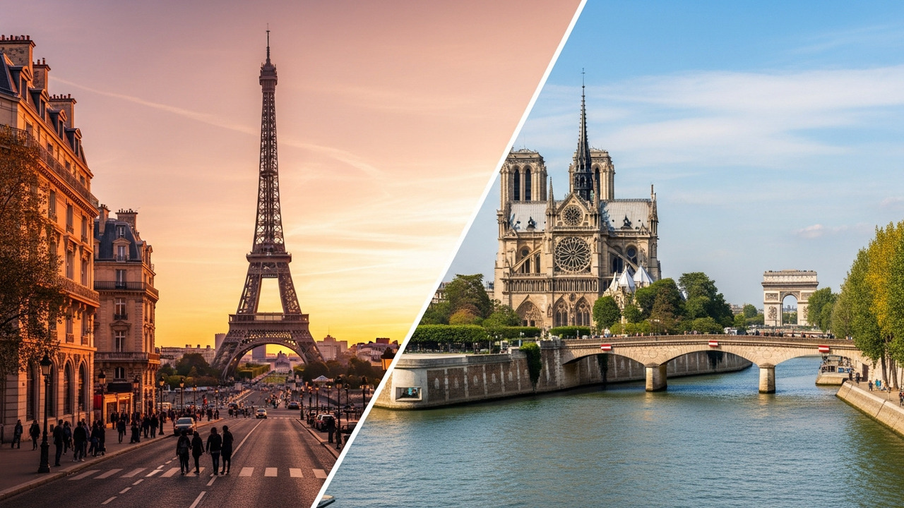 Paris concentra marcos que definem a história ocidental e a arquitetura mundial. A Torre Eiffel, embora seja o símbolo da cidade, deve ser vista de vários ângulos, sendo o Trocadéro o melhor ponto para fotos. A visita ao topo, contudo, exige compra de bilhetes online com antecedência.