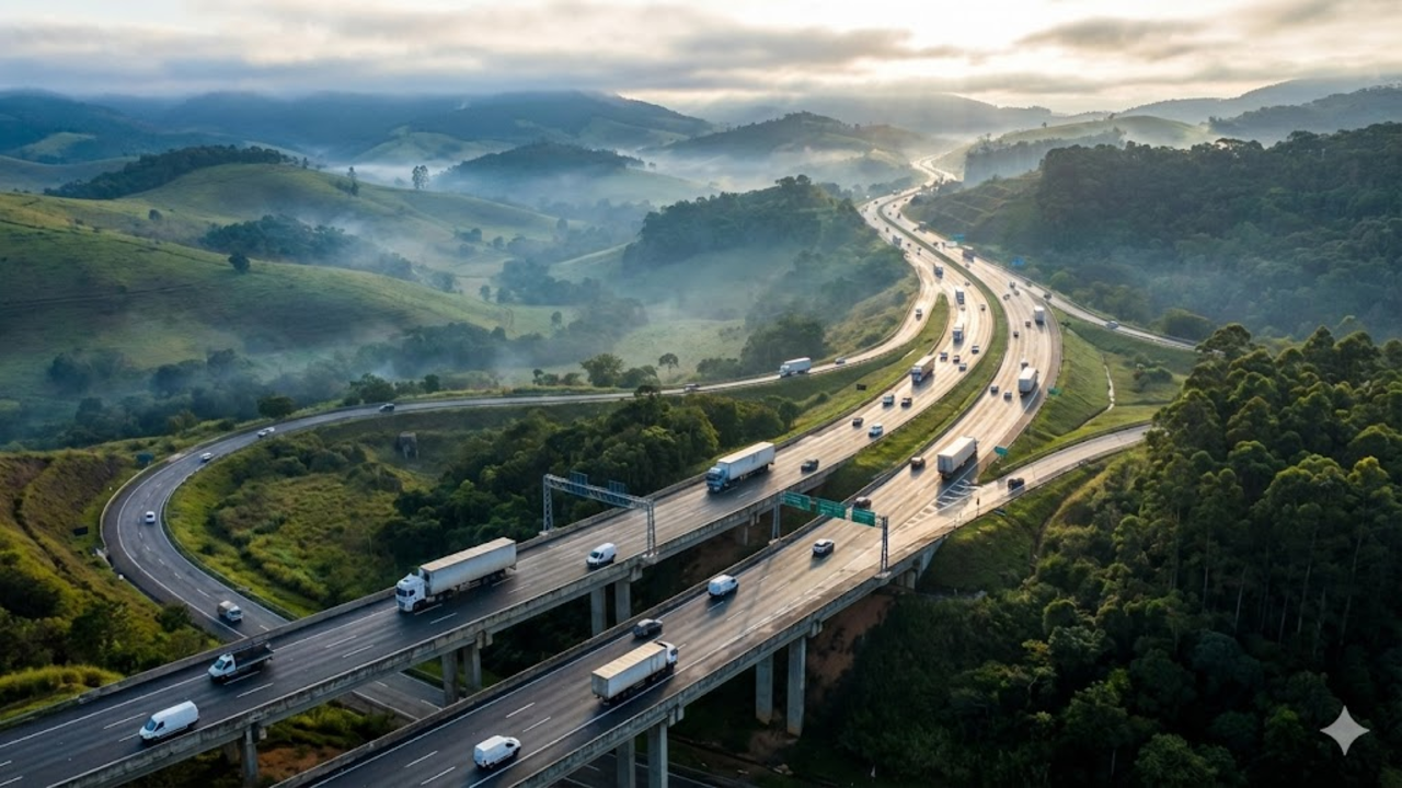 Com seus 562 km de um traçado que corta serras e vales, a Rodovia Fernão Dias é o principal corredor econômico entre São Paulo e Belo Horizonte. O que já foi a temida “Rodovia da Morte”, hoje é uma via duplicada e vital para a indústria e o comércio do Sudeste.