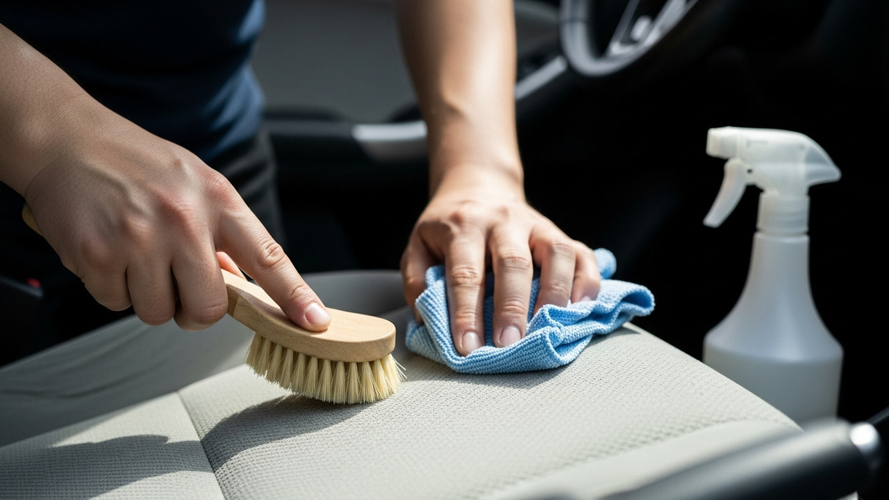 A técnica de aplicação é crucial: nunca jogue o líquido diretamente no banco. Borrife a solução em uma escova de cerdas macias ou em um pano de microfibra e, então, esfregue o tecido com movimentos circulares suaves. Isso evita que a espuma interna do banco encharque, o que poderia danificar sensores de cinto ou aquecimento, além de demorar dias para secar.