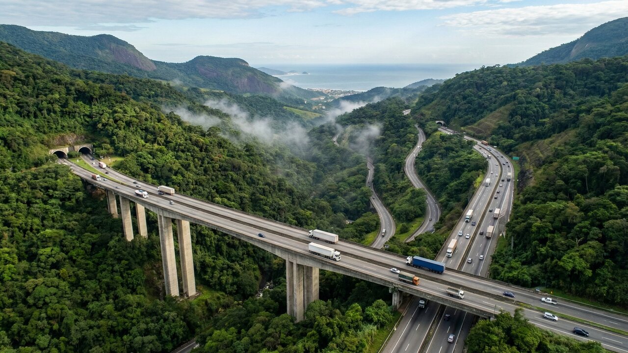 O grande destaque é a experiência de dirigir por uma obra de arte da engenharia. O trajeto revela paisagens espetaculares da Mata Atlântica, com viadutos que parecem flutuar sobre o verde e túneis que cortam a rocha viva da serra, criando uma imersão única na natureza.