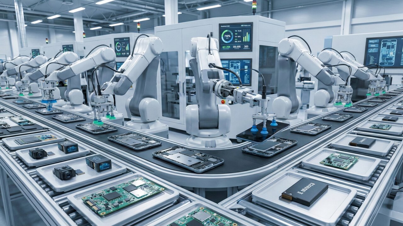 Como funciona a linha de montagem de smartphones com robôs de precisão?