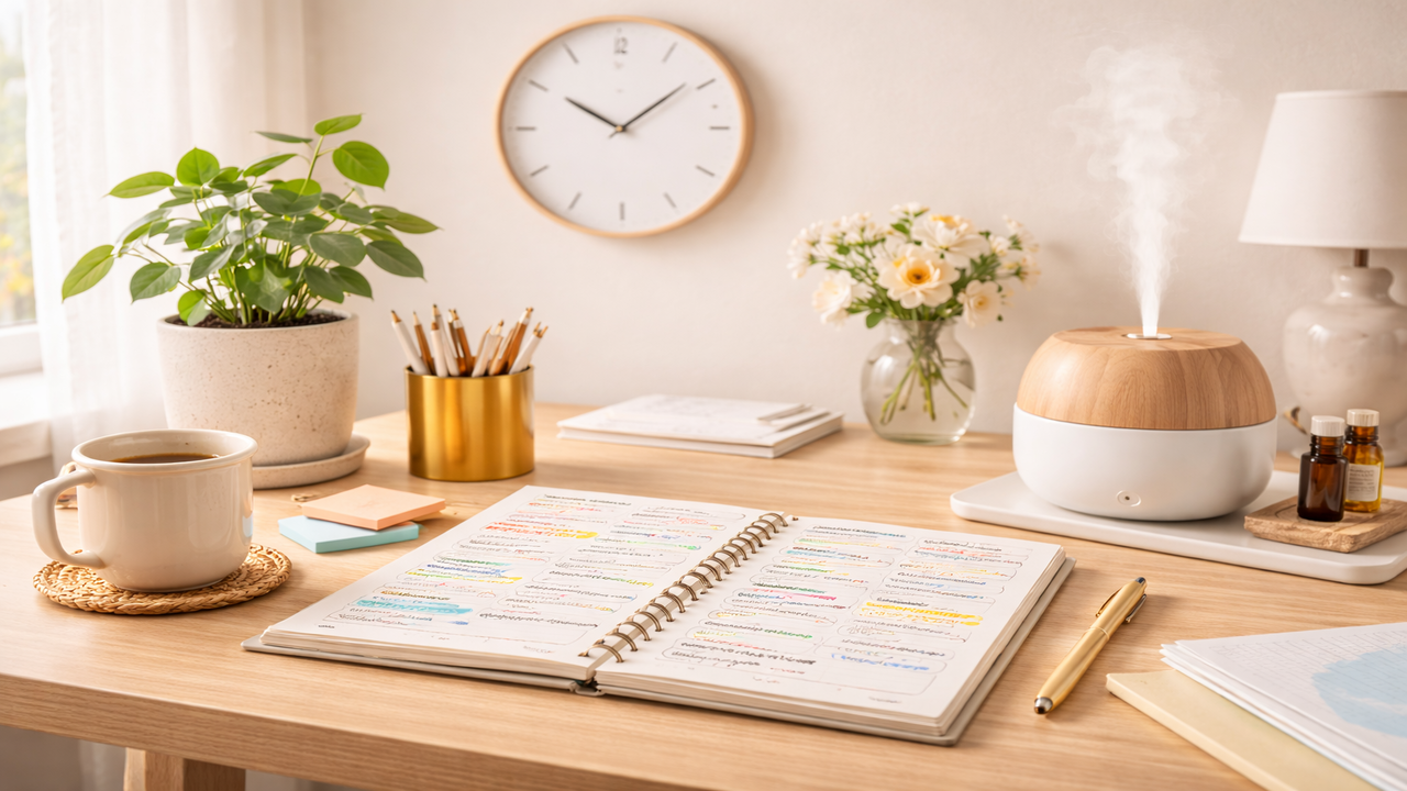 Manter a rotina organizada é um desafio constante para quem divide o tempo entre trabalho, estudos, família e cuidados pessoais. Muitos recorrem a ferramentas simples do dia a dia para ter mais controle das atividades e preservar o equilíbrio mental e físico, usando itens como agenda, relógio de parede e difusor de aromas em escritórios, casas e ambientes de estudo.