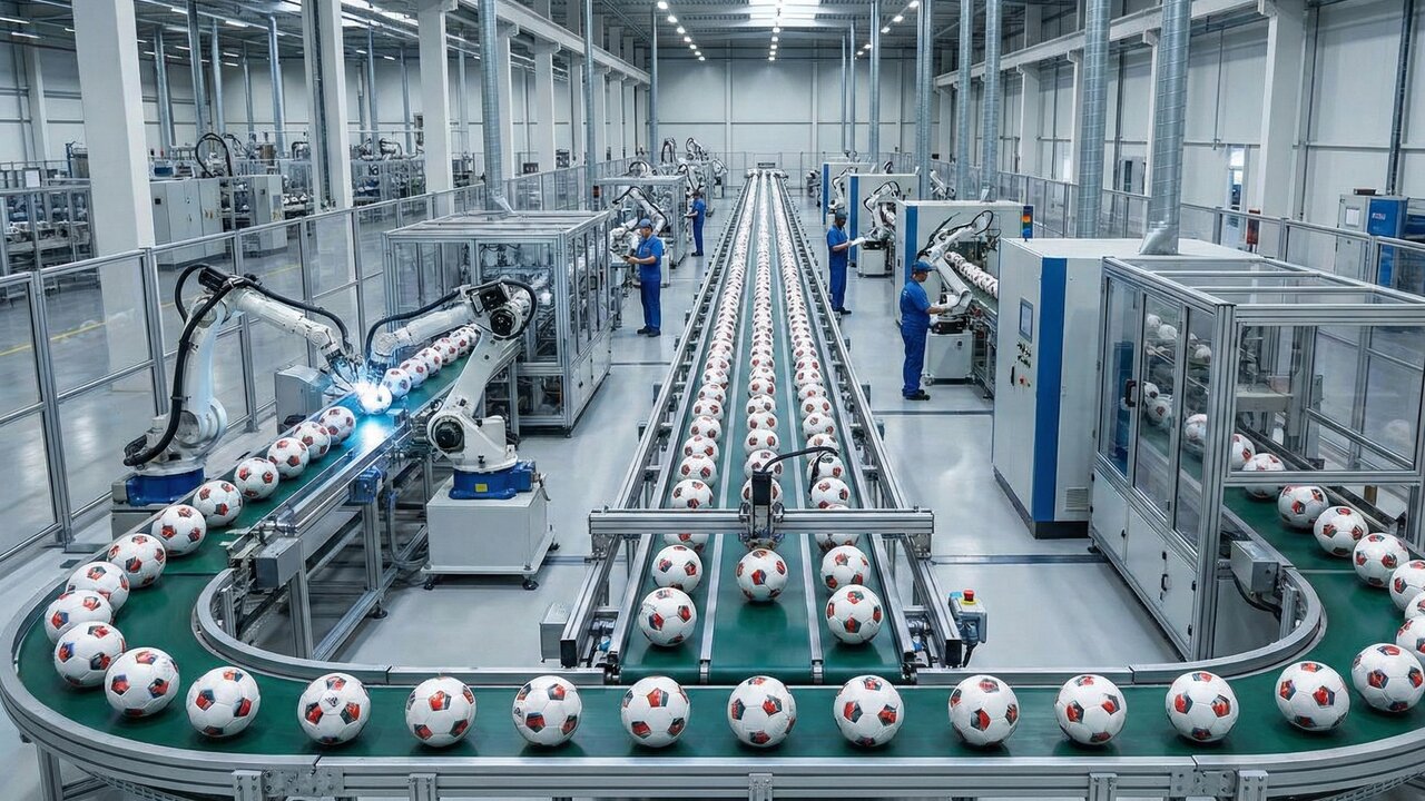 Muito além de couro e costura, a produção de bola de futebol moderna é um processo de alta tecnologia. Feita com 20 painéis soldados a calor e pesando exatamente 450 gramas, a bola oficial passa por testes rigorosos para garantir a perfeição em campo.