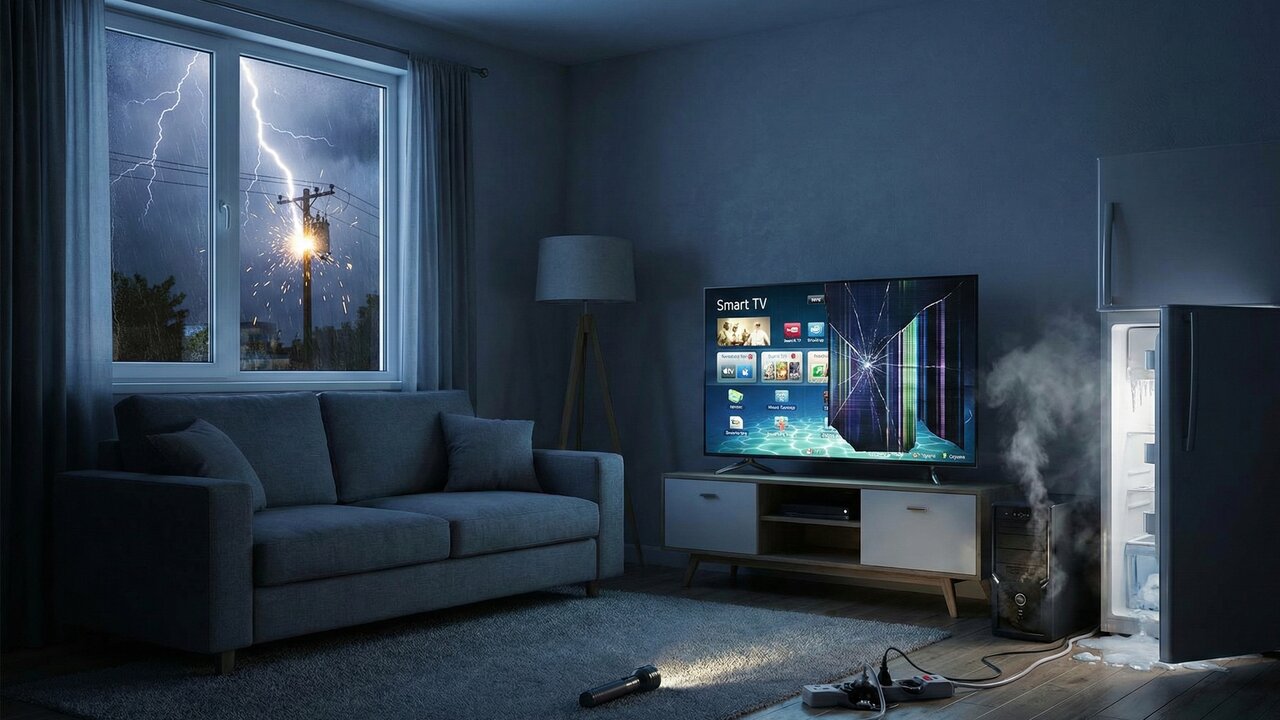Picos de tensão na rede elétrica são comuns durante tempestades e podem destruir placas eletrônicas sensíveis de Smart TVs, geladeiras e computadores. A legislação brasileira determina que a responsabilidade pela qualidade da energia é da distribuidora (como Enel, Cemig ou Light), e o consumidor não deve arcar com o prejuízo causado por falhas na prestação do serviço.
