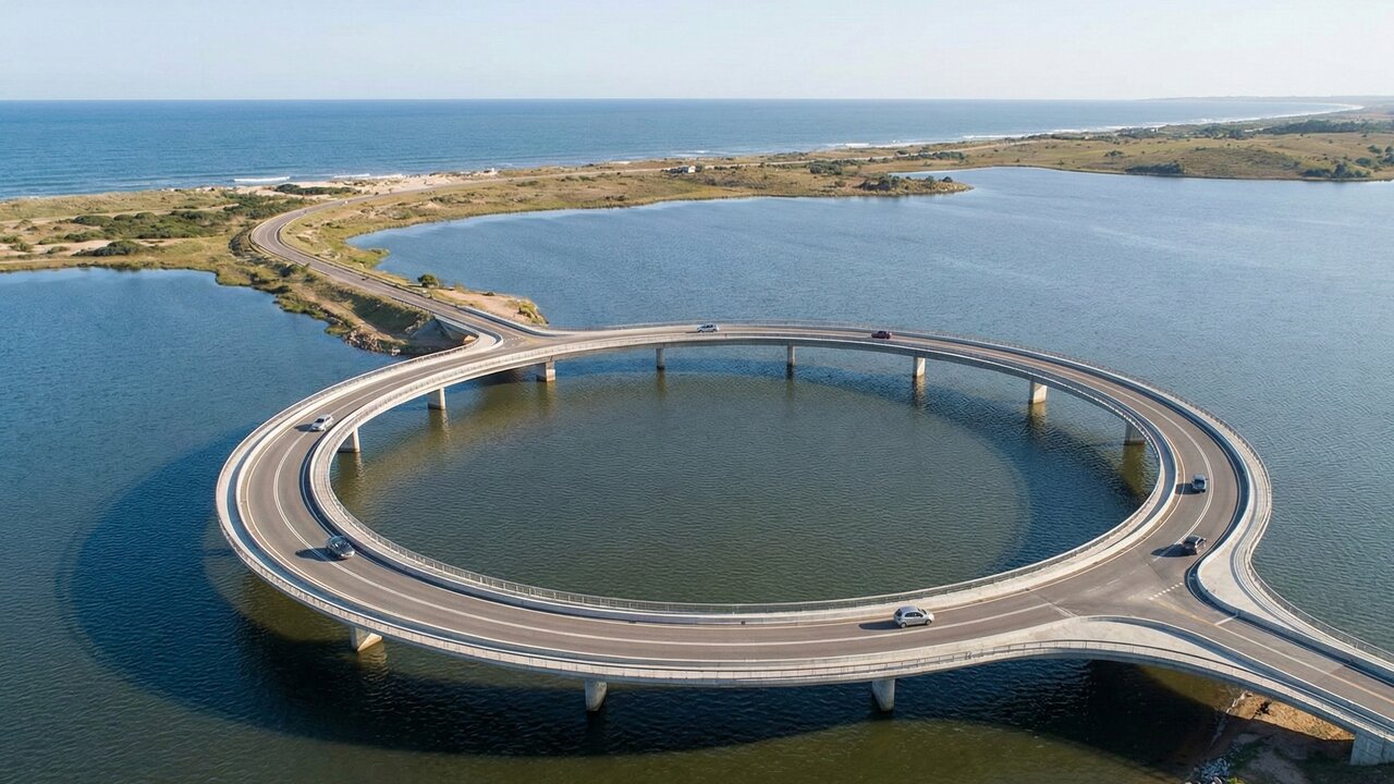 A Laguna Garzón Bridge, inaugurada em 2015, é um marco da arquitetura uruguaia que substituiu as balsas por um anel de concreto sobre a água. Seu formato circular de 202 metros de diâmetro obriga a redução de velocidade, transformando a travessia em um passeio contemplativo.