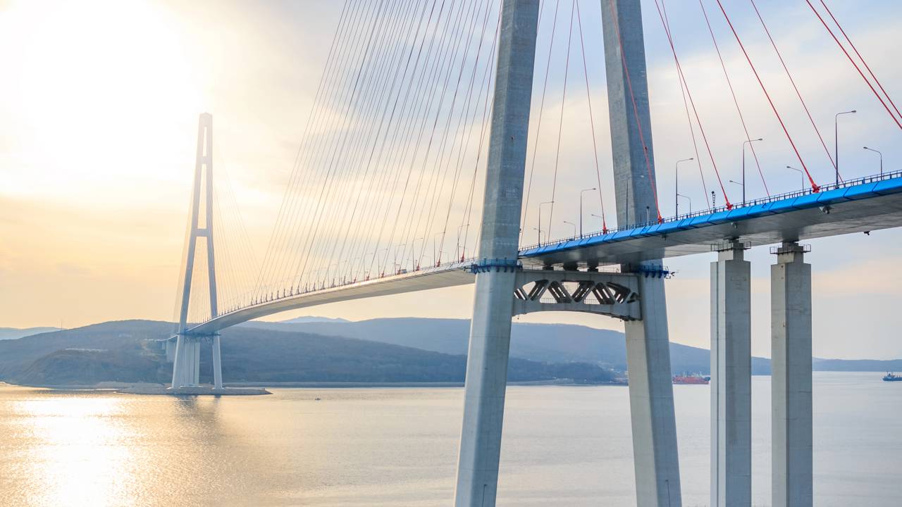 A Ponte Russky, localizada em Vladivostok, na Rússia, é uma das estruturas mais impressionantes do mundo contemporâneo. Com um vão central de 1.104 metros e torres de 320 metros de altura, ela detém o recorde de maior ponte estaiada de todo o planeta.
