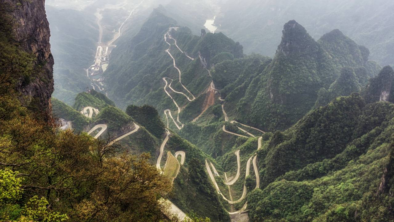A Tianmen Shan Winding Road, localizada no Parque Nacional da Montanha Tianmen, na China, é famosa mundialmente por seu traçado extremo. Com 11 km de extensão, a rodovia é considerada a rota mais sinuosa e desafiadora da província de Hunan.