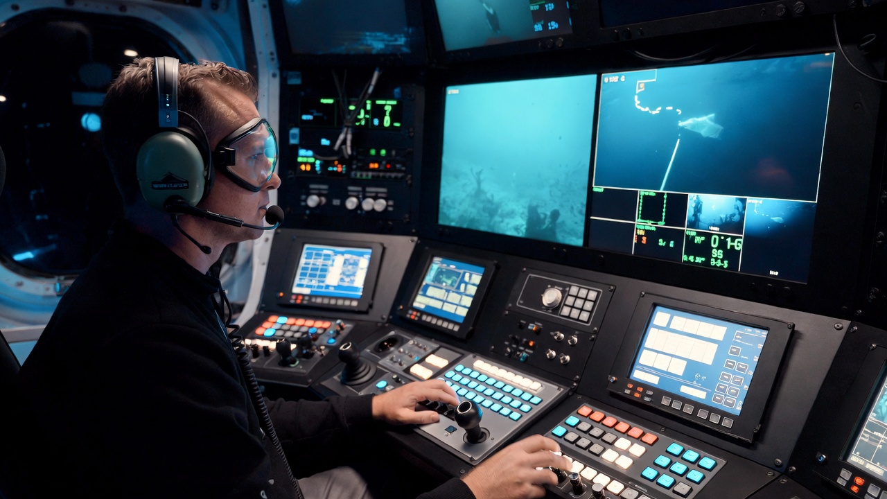 O piloto controla um submarino não tripulado a partir de uma cabine cheia de telas dentro do navio ou da plataforma. Ele guia o robô até o fundo do oceano para realizar tarefas complexas, como fechar válvulas de poços de petróleo, inspecionar cascos de navios ou auxiliar na instalação de equipamentos subsea. A precisão deve ser cirúrgica, pois um movimento errado pode danificar equipamentos que custam milhões de dólares.