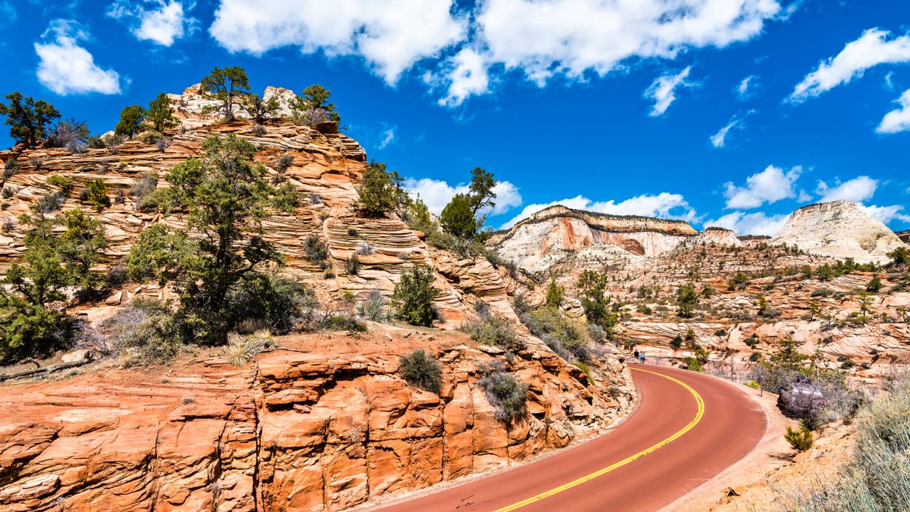 A Zion-Mount Carmel Highway é uma das estradas mais cênicas dos Estados Unidos, servindo como o portal principal para o Parque Nacional de Zion, em Utah. Concluída em 1930, a rodovia é famosa por seu túnel histórico esculpido diretamente na rocha.
