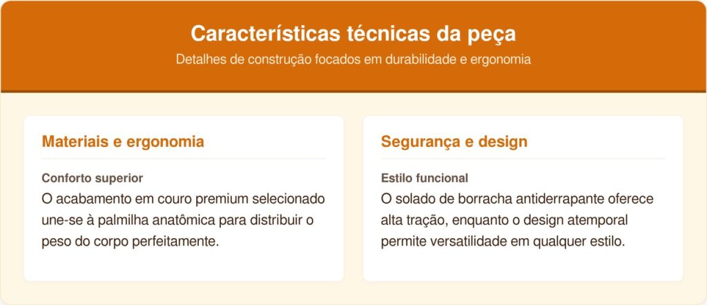 O couro legítimo possui porosidade natural que permite a respiração da pele, evitando odores e umidade excessiva. Diferente do plástico ou tecidos de baixa qualidade, esse material orgânico se adapta à anatomia do usuário, proporcionando um ajuste personalizado após as primeiras horas de utilização.