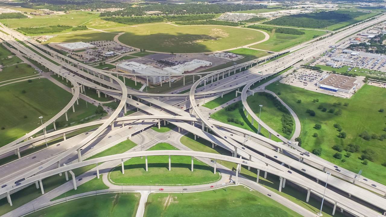 Atualmente, o ponto mais largo da rodovia concentra pistas principais, vias expressas exclusivas e ruas laterais de acesso. Essa estrutura monumental reflete a cultura automobilística do Texas, onde a mobilidade urbana é centrada na eficiência das grandes rodovias interestaduais.