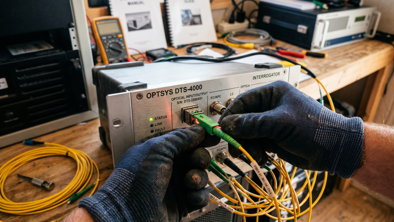Em operações de petróleo e gás, cabos de fibra óptica são posicionados junto às tubulações do poço durante a fase de completação. Essa instalação permite que o sensor acompanhe toda a coluna produtora.